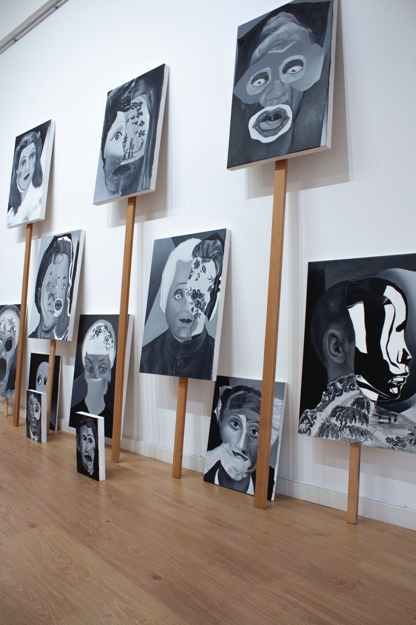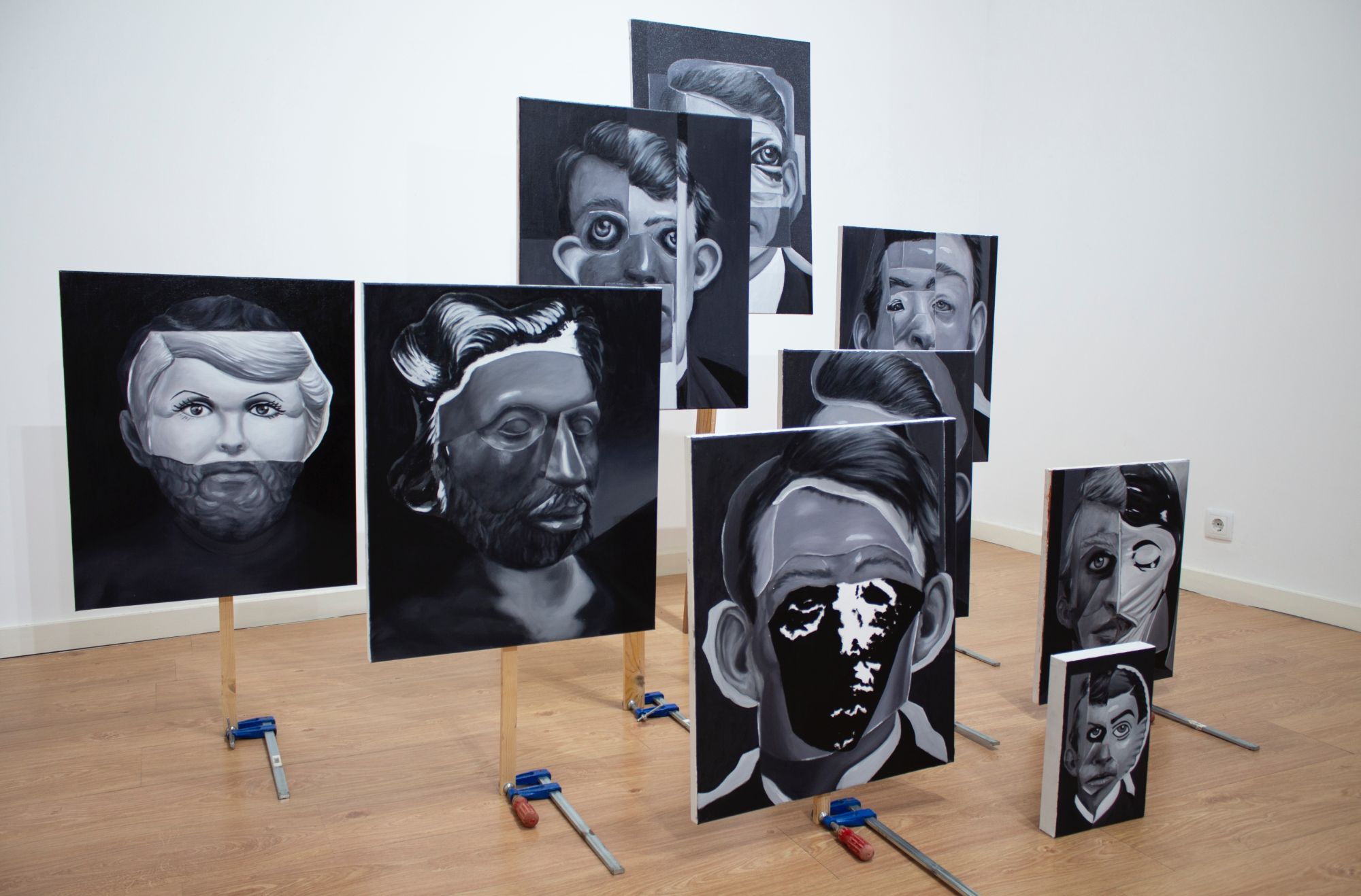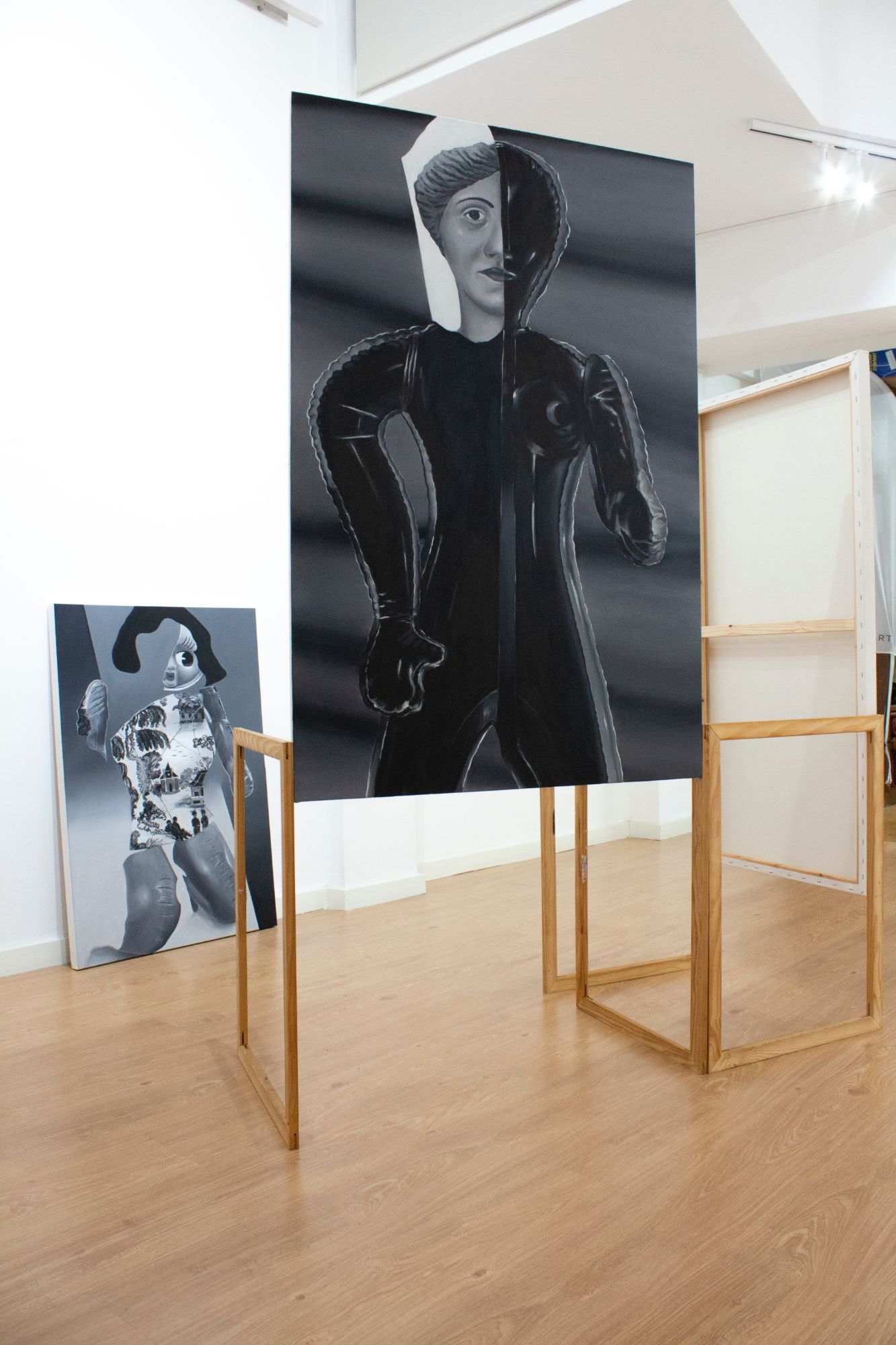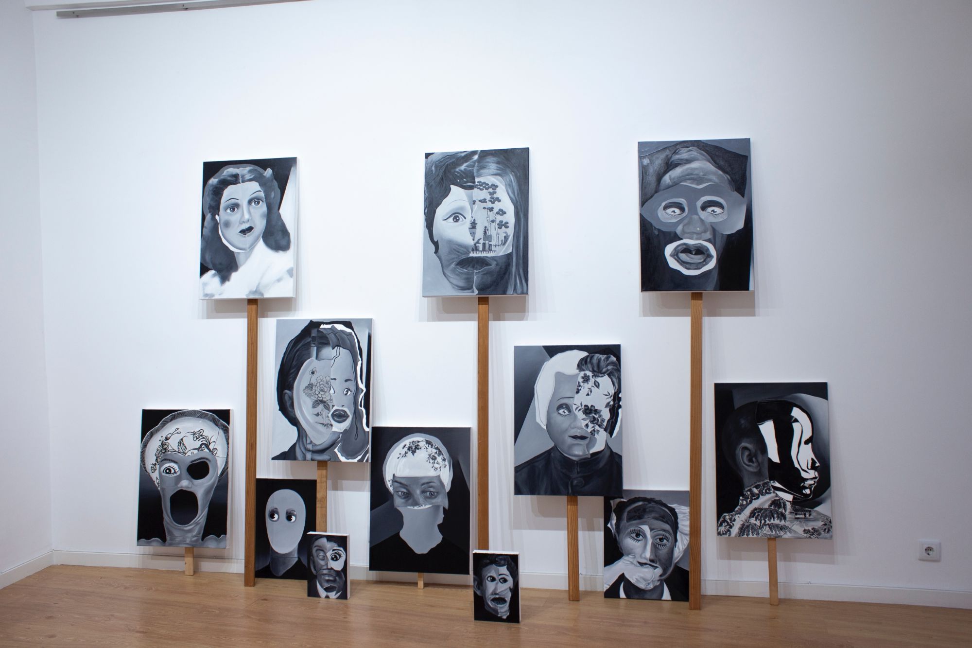 This series of paintings approaches the grotesque in a carnivalesque perspective, the figures are created by joining parts presenting a hybrid and changing nature, exploring new territories.