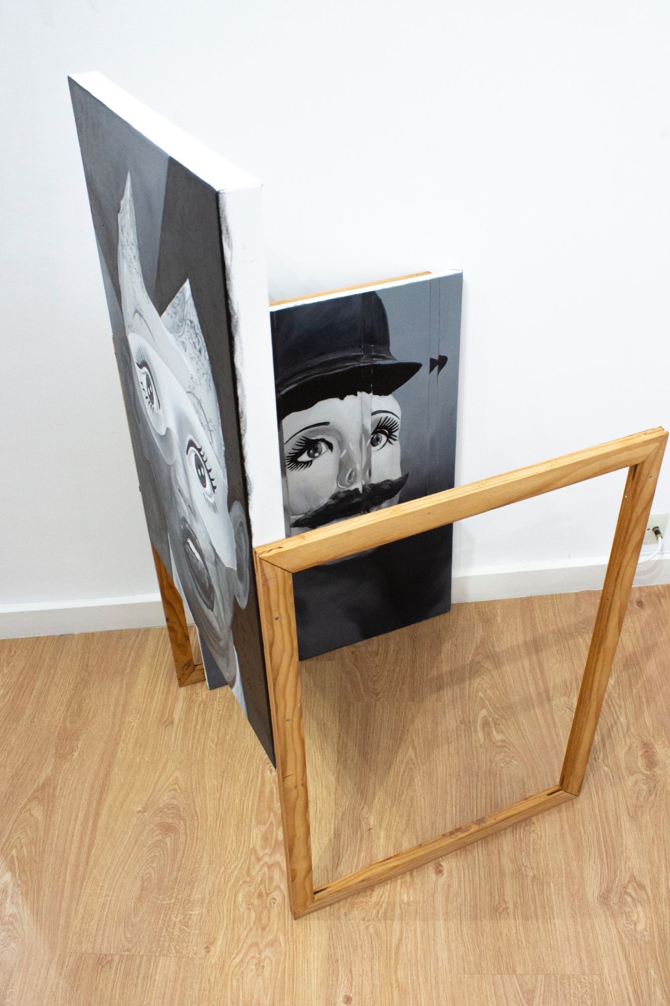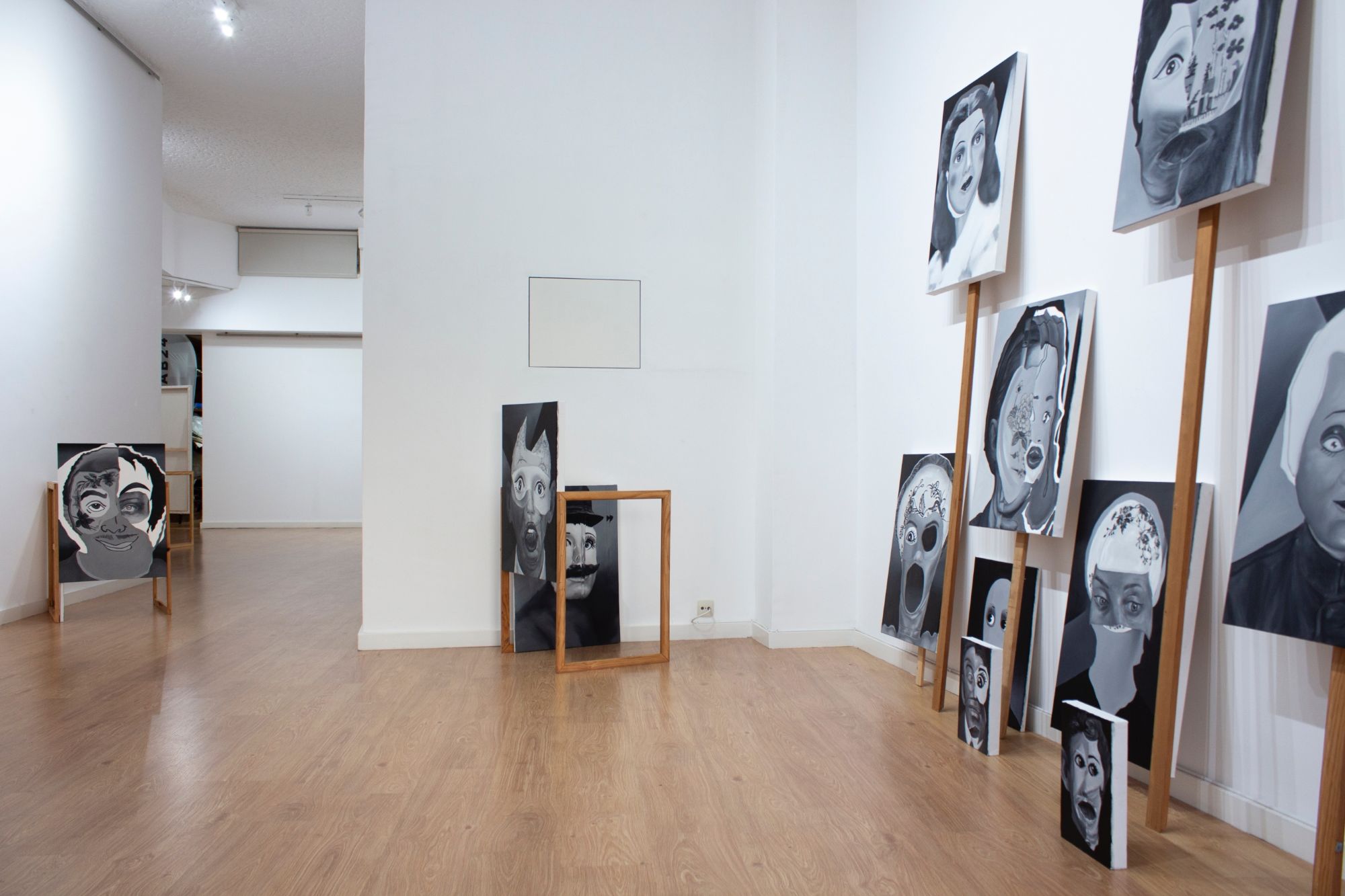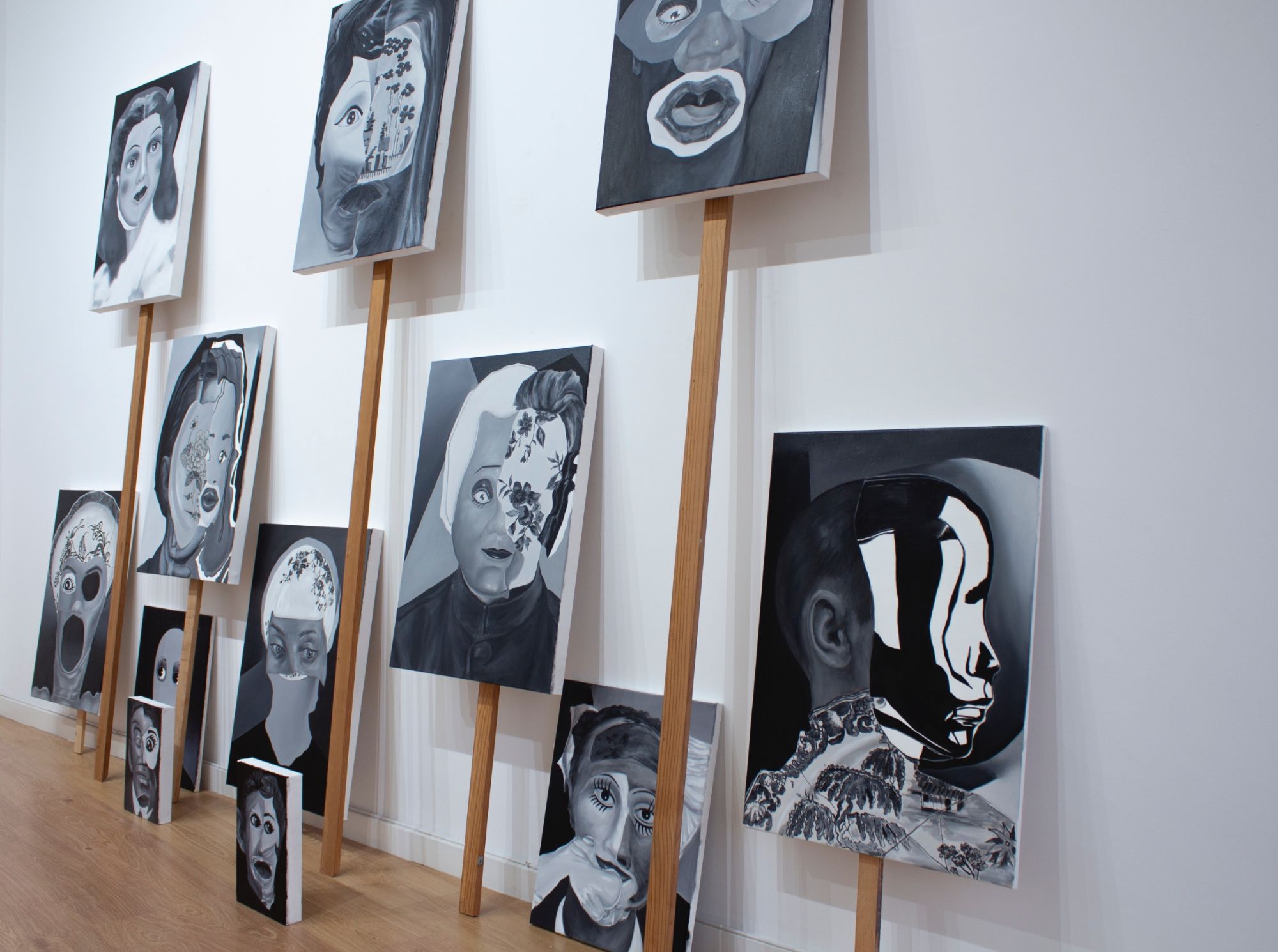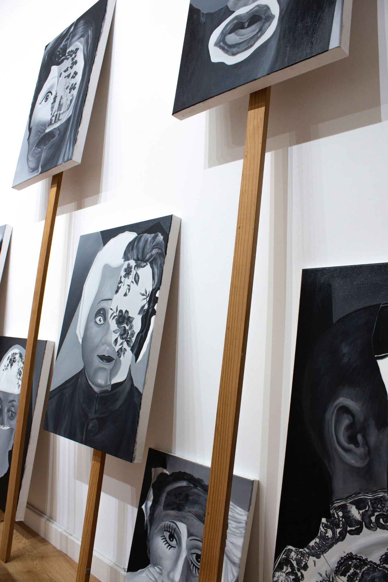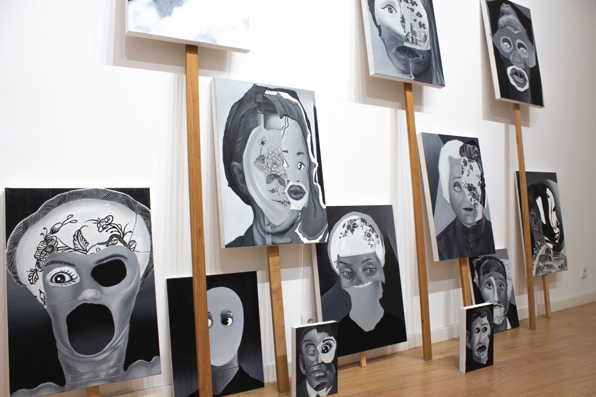 This series of paintings approaches the grotesque in a carnivalesque perspective, the figures are created by joining parts presenting a hybrid and changing nature, exploring new territories.