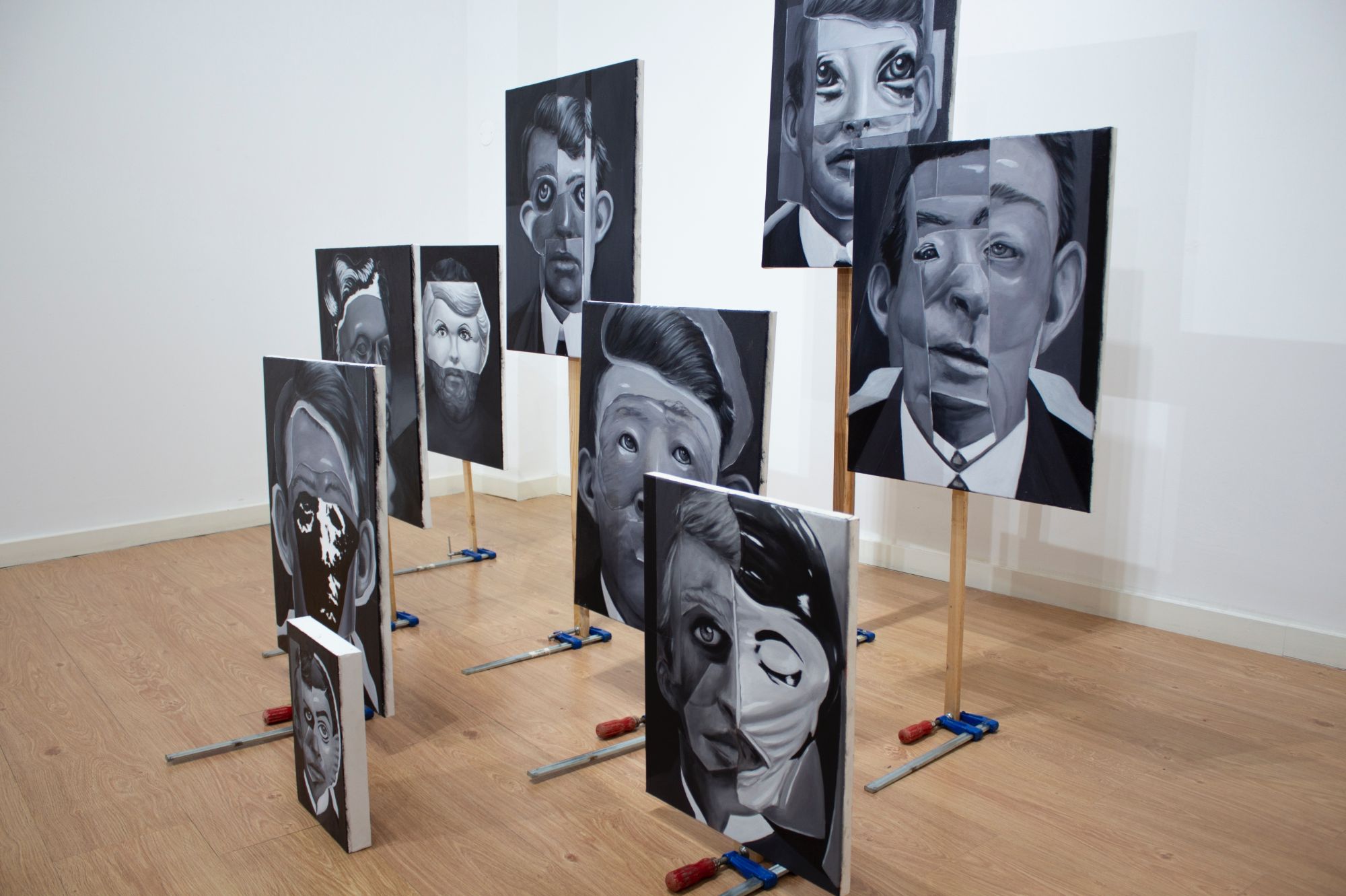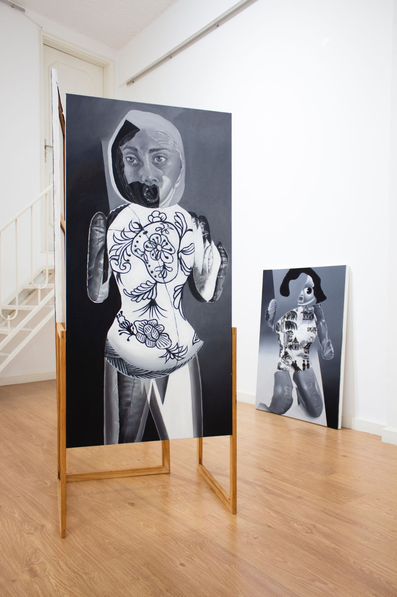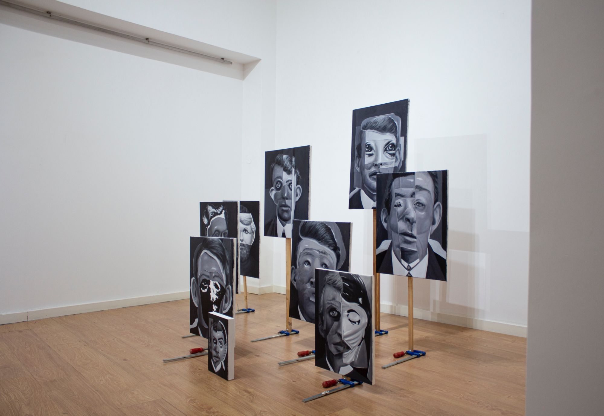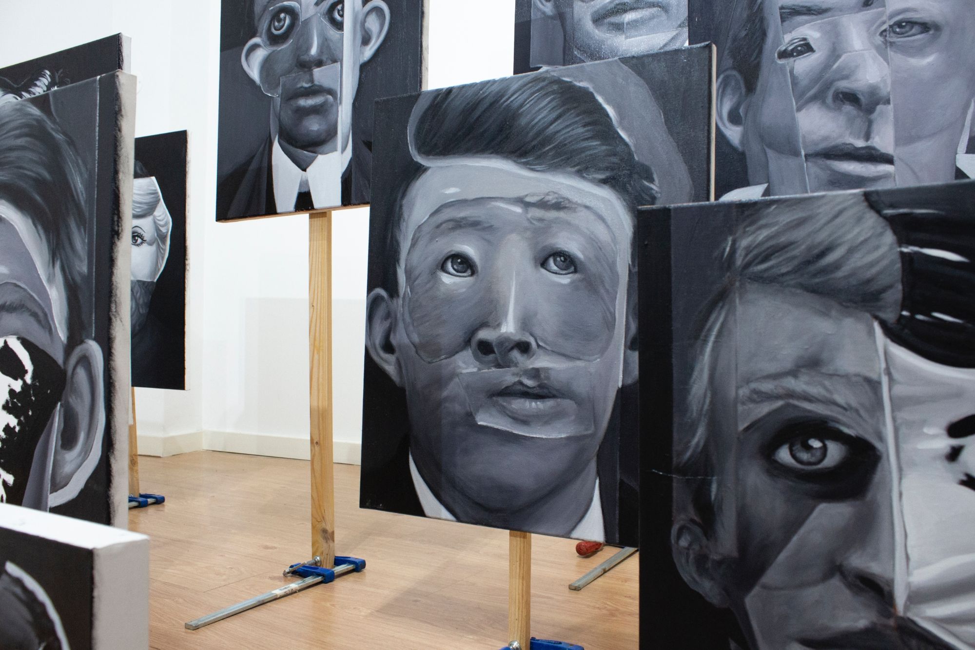 This series of paintings approaches the grotesque in a carnivalesque perspective, the figures are created by joining parts presenting a hybrid and changing nature, exploring new territories.