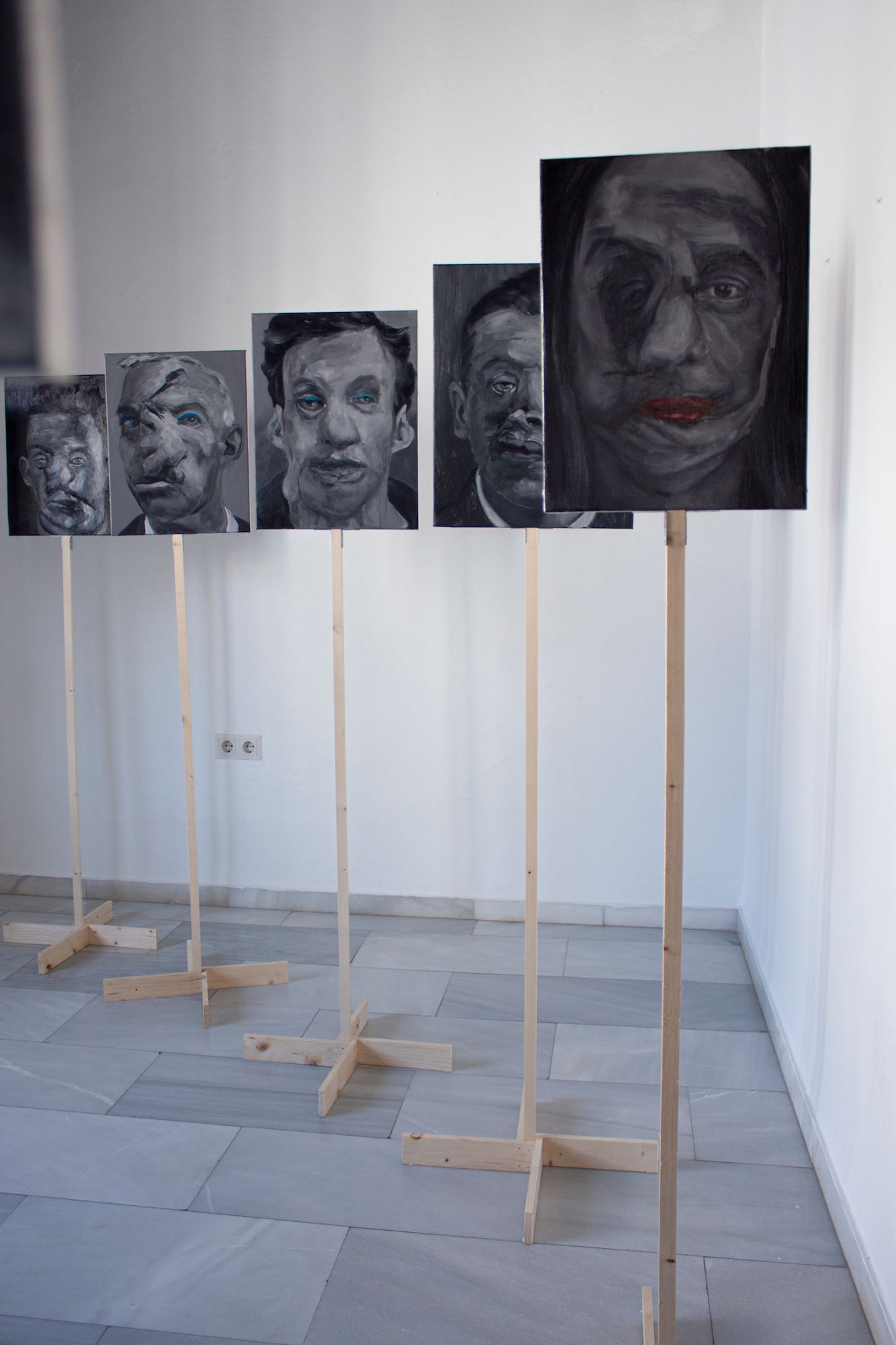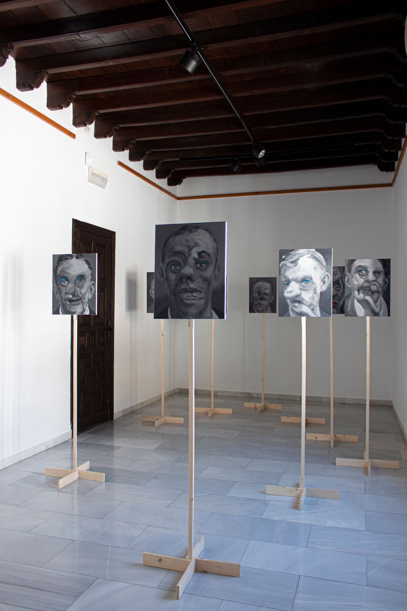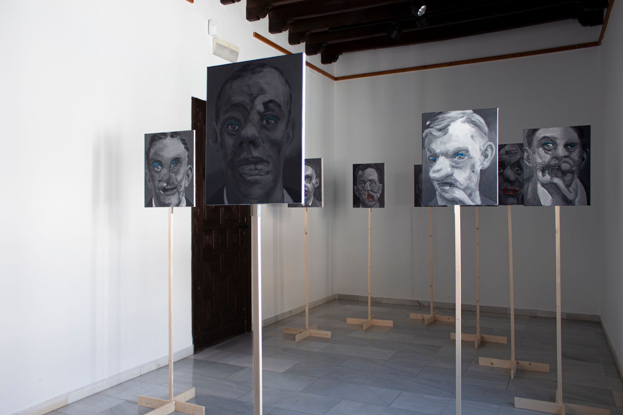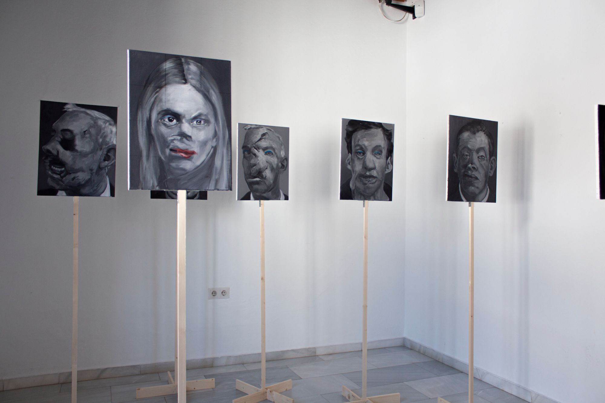 La Piel's paintings are sinister, they make ugliness and violence an aesthetic factor, resulting from the collage of various images of documentary portraits that are even ambiguous in the definition of the sexual gender. They are hard images, which simultaneously repel and attract; that is why they are grotesque, insofar as they allow the coexistence of two apparently antagonistic worlds, the beautiful and the abject, at one point. Thus, ideal representation is surpassed, giving rise to an excessive regime of representation of form, a fusion of parts and territories, where exaggeration, satire and the bizarre are present, creating a disturbing and sentimental imagery.